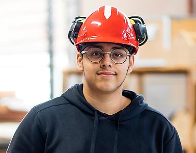 "Jag valde Byggprogrammet för att jag tycker om att jobba praktiskt med händerna. Jag tycker att det är ett bra upplägg på Figy att alla läser samma sak i år ett, ungefär som ett grundår för att inför årkurs två göra ett mer riktat val mot det yrket som jag vill bli till exempel målare, plåtslagare, golvläggare eller anläggare." //Ahmed