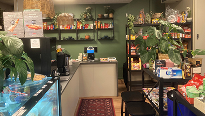 Kafé som förgyller dagen för sjukhusets besökande och personal. Du kan bland annat fika, äta lunch och köpa presentförpackningar och tidningar.