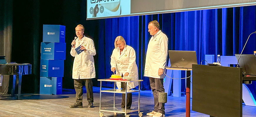 De tre kommunalråden med Tobias Peterson i spetsen kom in med tårta som de bakat på temat samverkan vid sista tillfället. Oklart om det är tårtan de bakade på stumfilmen som inledde alla pass. Sedan sammanfattade Tobias medarbetardagarna 2025.