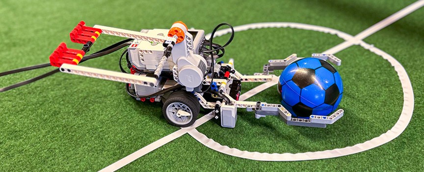 Under påsklovet kommer du att ingå i ett lag där ni får bygga och programmera en egen EV3-robot för att delta i en spännande fotbollsturnering.