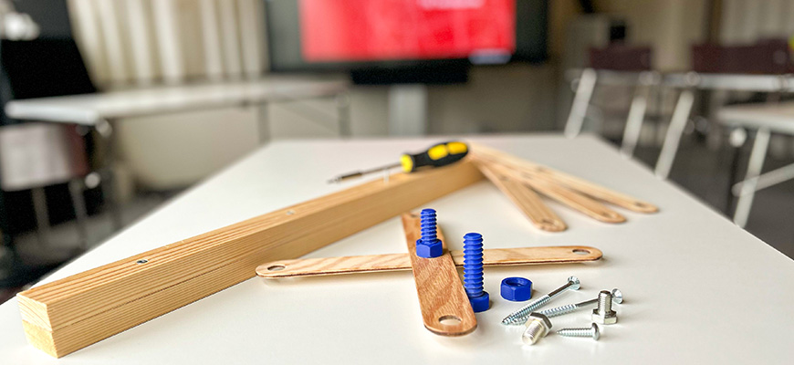 Under besöket träffar barnen figuren Skruven från böckerna ”De mäktiga fem”. Barnen sammanfogar saker med hjälp av stora plastskruvar och tränar på att skruva träskruvar i en träplanka.